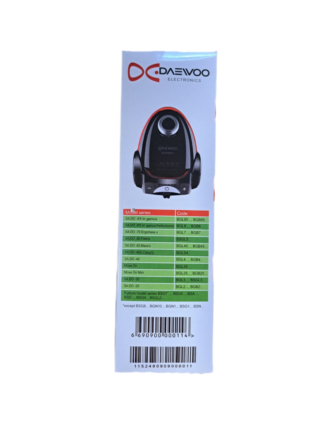 پاکت جاروبرقی دوو و اسنوا